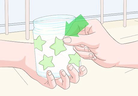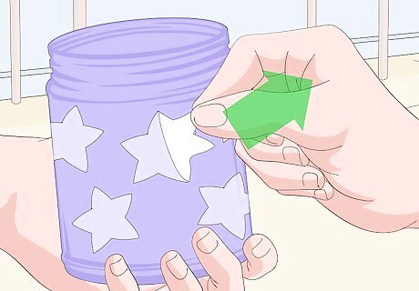 Arrange your shapes. Stylishly apply your shapes onto your jars. Take note of where you want the light to come through and space out your shapes accordingly. Once you’re satisfied with the placement, wipe down the jars to get rid of any debris.
