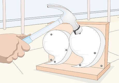 Create a base and back. Cut some scrap wood to the size of your quotation marks and glue or nail them together at a perpendicular angle to create the base and back. Nail or glue your quotation marks onto the scrap wood base and back. Use wood clamps when using glue as the glue dries. You may also paint the base and back. Paint them the same colour as your bookshelf to make your quotation marks seem as if they were floating.