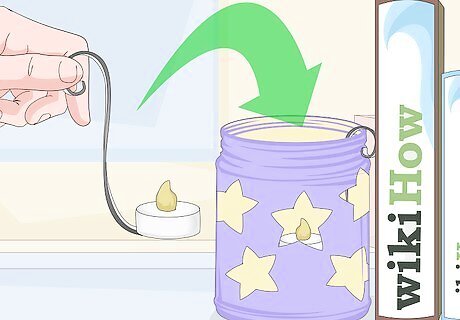 Place your tealights. Once you have pulled all the stickers off, place your tealights in the jars and use them as ambient bookends. Make sure you test your tealights to make sure the bulbs haven’t burned out.