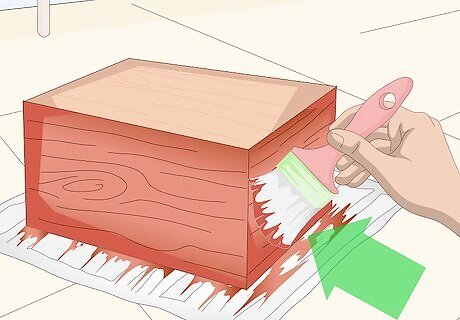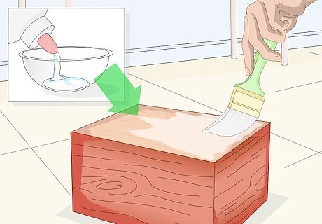 Create a glue mixture. Pour tacky glue into a bowl of water. Once the blocks are dry, use a paint brush to apply the mixture to the top of the blocks that do not have any stain on them.
