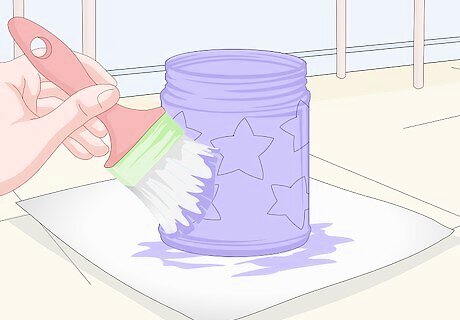Paint your jar. Choose a colour and paint over the entire jar. Apply several coats allowing each coat to dry before adding another coat. You may want to choose a colour that goes with the design scheme of your room.