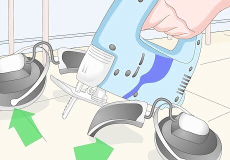 Cut the headphones. Use heavy duty scissors, tin shears, or another heavy duty cutting tool to cut the headphones directly in half. Make sure they are cut in half because you need the symmetry to make your look work. Find vintage headphones at your local thrift store or online.