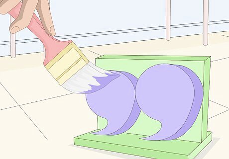 Paint your book ends. Paint your quotation marks a contrasting colour to the base and back to help them stand out. Be sure to sand both the plaster quotation marks and wooden base and back before painting them. Consult the paint packaging for proper drying times. Let your plaster dry for a few days. The paint may end up peeling off if you do not allow your plaster to dry. If this happens, sand off the paint and paint over it again.