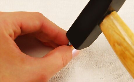 Hammer the nail through the fabric. Make sure to put it in far enough that you can't pull it out by hand.