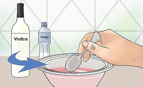 Mix in the vodka. Once the gelatin is dissolved into the water, pour in your vodka. Use a mixing spoon to stir in the vodka until you have an even, consistent mixture.