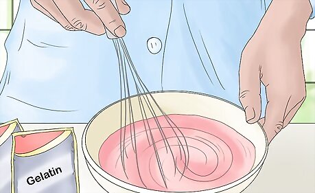 Combine the jello powder and hot water. Pour your water into a mixing bowl. Then, add the gelatin powder. Stir the powder into the water until the jello is completely dissolved. Times will vary depending on the precise heat of your water, but jello usually melts within a few minutes.