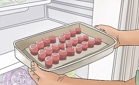 Refrigerate your shots for several hours until they're set. It usually takes a few hours for the gelatin to firm, but times vary depending on your fridge. Keep the shots refrigerated until the jello is firm and slightly jiggly.