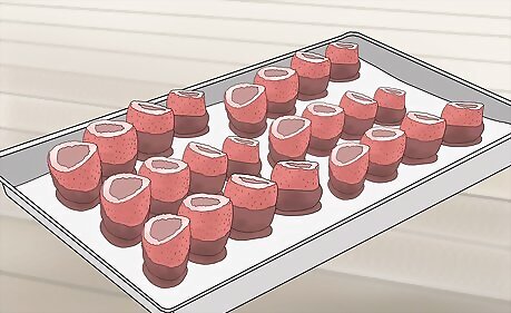 Place the strawberries in the freezer. Freezing the strawberries helps the chocolate harden. While the strawberries are freezing, you can prepare your jello. The chocolate should be hardened by the time you're done with the jello.