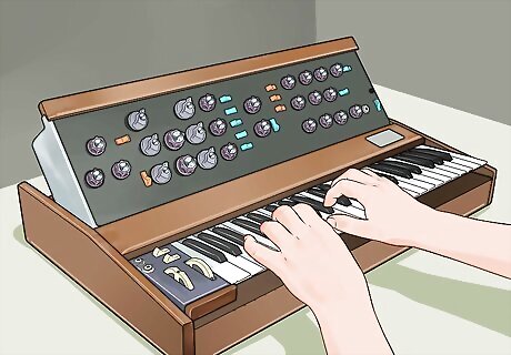Make electronic music with a synthesizer. While “synthesizer” is used synonymously with “electronic musical instrument,” the synthesizer is the part of the electronic instrument that produces the actual music: the beats, the rhythms, and the tones. Early synthesizers, such as the Moog Minimoog, were capable of producing only one tone at a time (monophonic). These synthesizers could not produce the secondary tones that other musical instruments could, although some synthesizers could produce two pitches at once if two keys were pressed. From the mid-1970s on, synthesizers that can produce multiple tones at once (polyphonic) have been available, allowing you to produce chords as well as individual notes. Most early synthesizers were separate from the means used to control the sounds they made. Many electronic musical instruments, particularly those for casual home use, now feature the synthesizer physically integrated with its control unit.