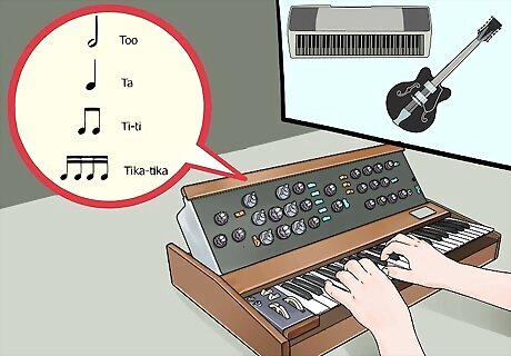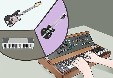 Add the bass rhythm. The next thing to add is the bass rhythm, whether from a bass guitar or other low-pitched instrumental sound. Be sure that your bass rhythm and drum beat work together before bringing in other instrumental sounds.