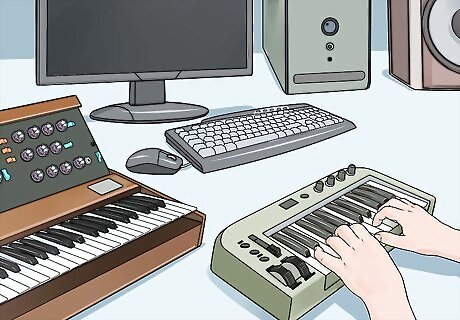 Choose a computer system with enough power, and make sure you’re familiar with the system. While standalone electronic musical instruments are enough to play electronic music, you will need a computer system if you want to produce electronic music. A desktop or laptop works well for creating music. If you plan on producing music at a fixed location, you’ll probably want a desktop. If you want to produce music at different locations, such as wherever your band rehearses, you’ll probably want a laptop. Use the operating system you’re most comfortable with. However, you should use the most recent version of Windows or MacOS that you can get access to. Your system should have a powerful enough CPU and enough memory to easily handle creating music with it. If you don’t know what to look for, a custom-built system designed for audio or video game usage should give you an idea of what kind of specifications to look for.