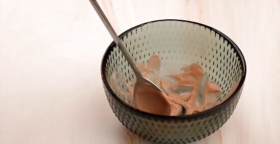 Stir well. Mix the foundation in a bowl with a makeup brush until thoroughly blended.