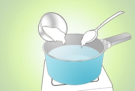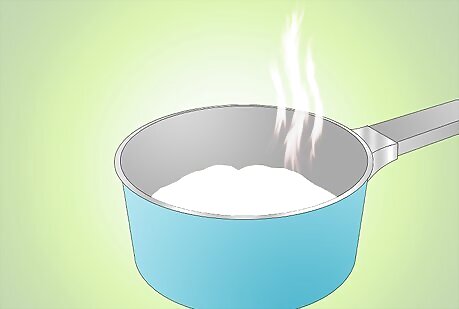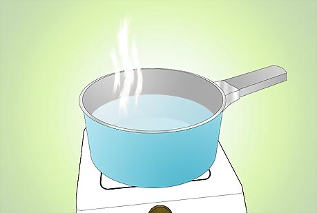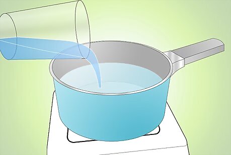 Fill a saucepan halfway up with cold water and set on the stove top. Turn the heat on high, while waiting for the water to get hot.
