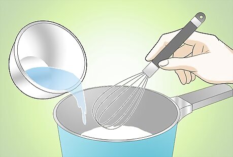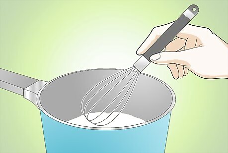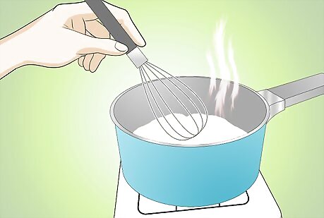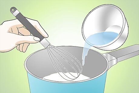 Place the saucepan containing the flour mixture on the stove top. Turn the heat onto the medium setting.