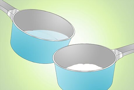 Measure out ½ cup and ¼ cup of the hot sugar water. Be careful as you pour.