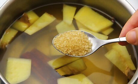 Pour the apple cider or juice into a large saucepan. Add the sugar. Warm up over medium heat until simmering but not boiling, about 4 minutes. Stir frequently to ensure that the sugar doesn't stick.