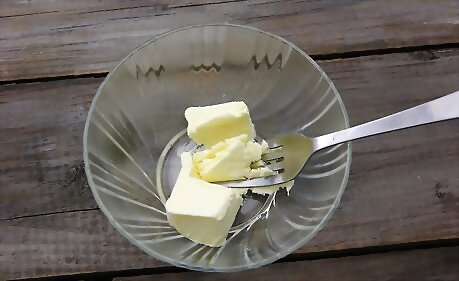Mash the softened butter in a small bowl until it is smooth. If the butter isn't already softened, melt in a separate pan. Don't overheat though, just a quick melt.