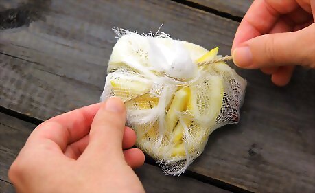 In a square of cheesecloth, place a couple of cinnamon sticks, four whole cloves, four allspice berries, plus the skin of half an orange and lemon, cut into small strips. Adjust any of these ingredients to taste, and tie this bundle up securely.