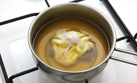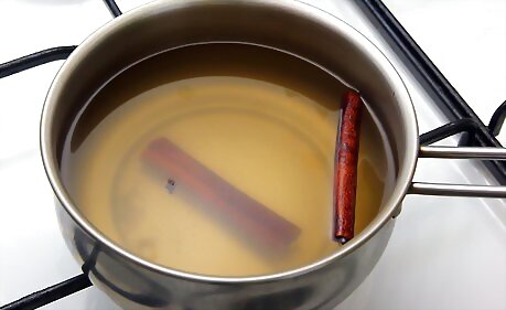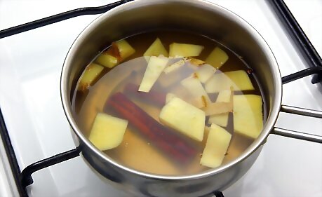 Pour the cider or apple juice into a large saucepan. Add the spices.