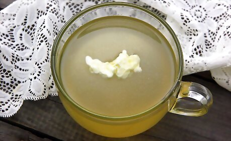 Pour the apple cider into glasses or mugs for serving. Add the apple brandy if using. Top each one with a dollop of mashed butter.