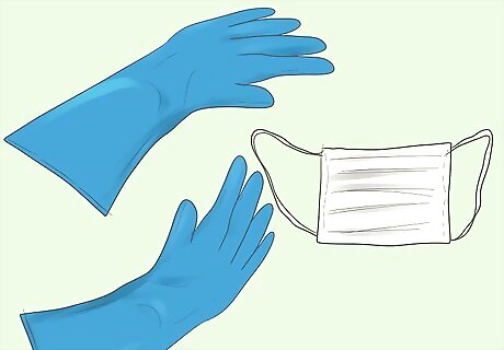 Put a face mask on and gloves on. You don't want to be breathing any of the iron oxide. Also, pop on some rubber or latex gloves to save your hands from getting dirty from handling the iron oxide.