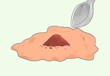 Add the measured out iron oxide to the putty. Pour a tablespoon of iron oxide shavings across the stretched out putty. The iron oxide should go onto the center of the putty.