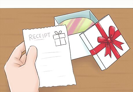 Return gifts you don’t want to make a quick buck. Ask for a gift receipt for any gifts that you don’t like so you can return or exchange it. Stores each have different return policies, so you may get money back or store credit depending on the business. That way, you can get something for yourself that you like more.