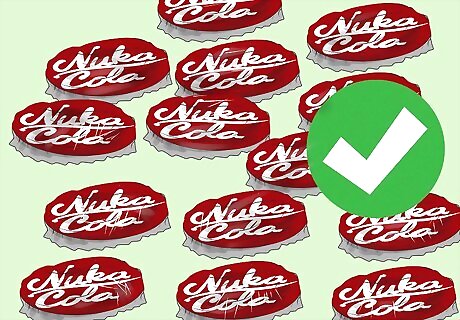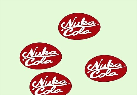 Google "Nuka Cola cap template" online. A fair amount of results should show up. Print off a sheet of cap images.