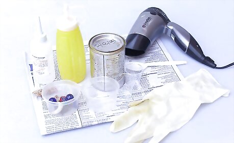 Cover your work area and put on your gloves. When working with resin, it is very important to cover your work area and protect your skin. The resin can damage your surfaces and irritate your skin. Lay down some newspapers or paper towels and put on your gloves before you begin working.