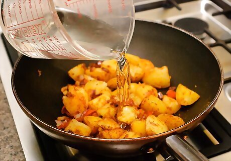 Add water. Depending on how thick or thin you would like you potato curry, add about 1/2 cup to 1 cup of water. If you feel that you have added too much water, let the potato curry sit on the stove set on low with a lid on the saucepan, and allow it to thicken.