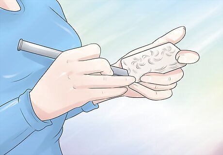 Make artsy frosted glasses. Buy cheap wine glasses or brandy snifters in good condition from thrift or discount stores. Wrap a few rubber bands around them, stuff the insides with newspaper, and then carefully and evenly apply a coat of frost-finish spray paint to the exterior. Once the paint dries, remove the paper and rubber bands to create a cool etched effect. The glasses look neat, but they aren't dishwasher or microwave safe. Be sure to let your customers know. Experiment with adding small shapes underneath the rubber bands, such as a leaf or cross. Consider using irregular natural shapes, too: a cup “etched” with a unique river stone's shape is an easy sell, and river stones are free.