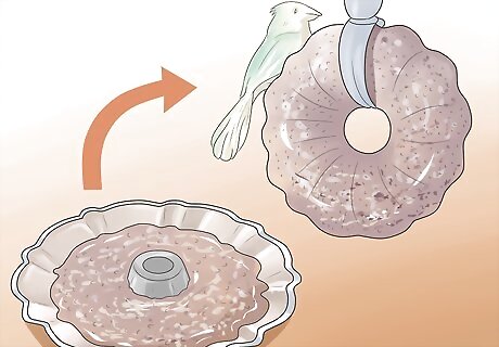 Make a bird feeder wreath. This craft requires a bundt pan and several ingredients, but the results are well worth it. You'll press a birdseed mixture into the bundt pan and let it set, then finish it with a festive ribbon for a pretty item that's ideal for birdwatching enthusiasts and family backyards. Mix ¼ cup warm water with a packet of plain gelatin, such as Knox, until the gelatin dissolves. At that point, whisk in 3 tablespoons (44.4 ml) of corn syrup (like Karo) and ¾ cup of flour until you get a thick paste. Stir in 4 cups of mixed birdseed and keep stirring until everything is worked in well together. Spray a bundt pan with nonstick cooking spray, and then press the birdseed mixture in evenly around the ring. Let it set for 10 minutes, then shake it out onto a clean surface. To make the wreath a little more symmetrical, you can replace it upside-down in the bundt pan and press it gently, which will smooth the back edges somewhat. Be careful not to damage the shape of the front of the wreath. Let the wreath sit aside in a dry place for 36-48 hours. You can make more wreaths during this time if you want. Once the wreaths are set, cut a long length of thick ribbon and tie it in a loose bow around the wreath to make a hanger.
