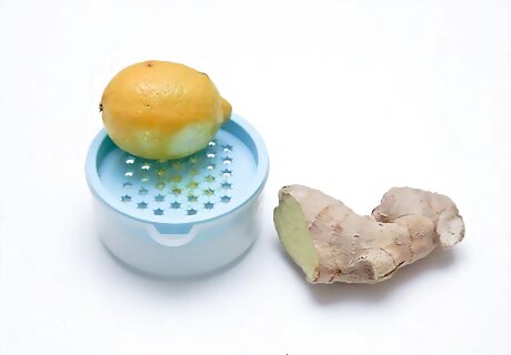 Prepare the ginger, lemon, and cardamom. While your water boils, zest a lemon to get the grated lemon peel. Then mince the fresh ginger root. Finally, bruise or crush the cardamom pods to release their aroma and strong flavor.