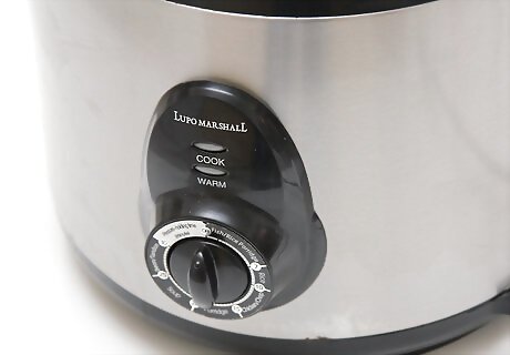 Cook the ingredients. Pour the tea and the orange juice into a slow cooker. Then add the spice bag and the dried fruit. Cover and cook the tea on the low-setting for four to six hours or the high-setting for two to three hours.
