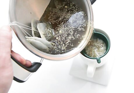 Strain the tea. Once the time is up, remove the tea bags and strain out the spices. You can use a large grated spoon to remove the tea bags and the cinnamon sticks. For smaller pieces of ginger and lemon zest, you might consider pouring the tea through cheesecloth. Serve the tea immediately after straining.
