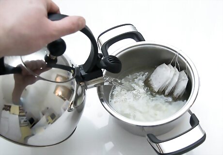 Boil the water. Fill a kettle or cooking pot with four cups of water. Place the kettle or pot on a stovetop burner set to high heat. The water should reach a rolling boil in roughly 10 to 15 minutes.