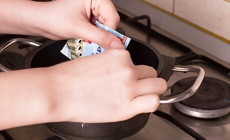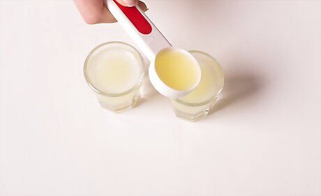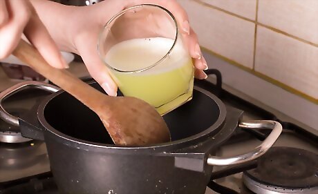 Measure and pour the alcohol into the bowl. Thoroughly stir until well mixed. Allow the mixture to cool a little.