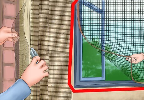 Install window screens. If you don’t already have them, install window screens either throughout your home or in windows your cat likes to perch. Window screens allow your cat to enjoy a bit more of the outdoors than it would with closed windows. They also minimize the risk that your cat will fall out of the window. Avoid sliding screens, which your cat may be able to manipulate. Get mosquito screens or pet-specific screens. You can get both types in a variety of materials such as vinyl, metal, nylon, or fiberglass. Add safety locks or screw the screen in place to prevent your cat from accidentally opening the window. Make sure the screens are securely installed before you allow your cat to enjoy them.