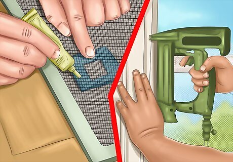 Repair any damage. If you discover any damage to a window or windows your cat enjoys, take the time to repair the damage. Not only can this keep your cat safe, but also maintains the integrity of your home. Replace windows, framing, latches, or screens that are severely damaged. Line a rattling window with some caulk and hammer a few nails into the surrounding frame. Seal any gap in window frames with some caulking and weather stripping around the frame. Have a professional repair small window cracks. If the crack is large or there are multiple cracks, consider replacing the windowpane. Patch holes in screens with a patch kit or according to their material. Use instant adhesive on nylon or fiberglass screens. Epoxy can fill holes in metal screens.