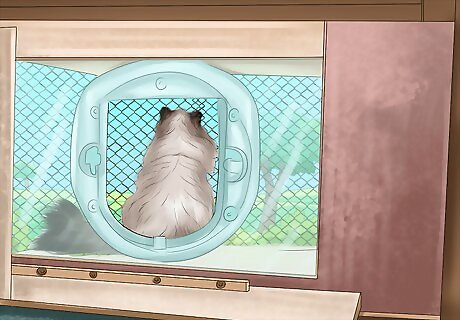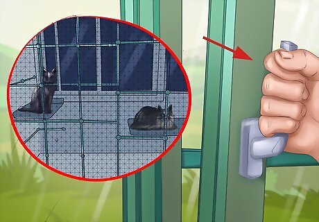 Close windows when you are gone. Any time that you are not at home, close your windows. This is one of the best ways to ensure that your cat stays safe in a window. You may also want to consider closing windows when there are loud noises from inside or outside of your home. These can startle cats and may make them damage the window in an unsafe way. Have or create a safe spot for your cat to enjoy the window while you are gone. This could be a cat tree or “catio” you make.