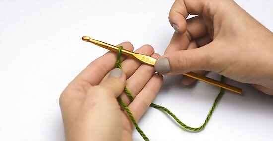 Pull the thread through the loop to make a chain stitch. Wrap the crochet hook around the thread once, catching it on the other side with the hook. Pull the thread through the slip knot on the hook to create your first chain. Repeat the process to make another chain stitch. Tighten the stitch up lightly as needed by pulling on the thread you have in your left hand.