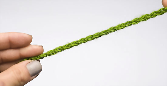 Add another chain stitch after the loop. To complete the chain stitching, hold on to the large chain stitch with your left hand (while still weaving the thread through your fingers) and make a normal chain stitch. To hold both at the same time, hold the thread woven through your fingers with your pointer finger up, but grasp the chain between your thumb and middle finger.