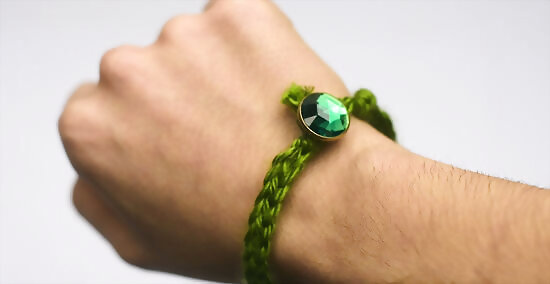 Create a large chain stitch near the end. Instead of tightening the chain up against the previous stitch, leave about 1 inch (2.5 cm) of space in the stitch. This space will act as a loop over a button to hold the bracelet in place.