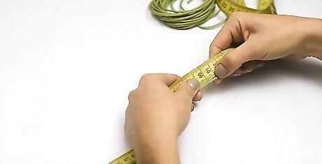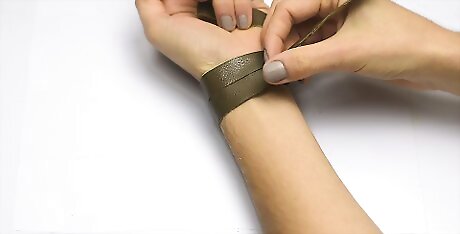 Measure a leather or suede strip to fit your wrist. The strip should be at least 0.75 in (1.9 cm) wide. Wrap it around your wrist twice, leaving an extra 1 inch (2.5 cm) or so for mistakes. Cut the leather or suede to the appropriate length.