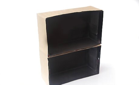 Cut off the flaps of all of your boxes with sharp scissors or a box cutter. Take them all outside and spray paint the inside of the boxes and the sides with the paint color of your choice. Leave them in a well-aired place while they dry according to the can's instructions.