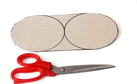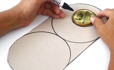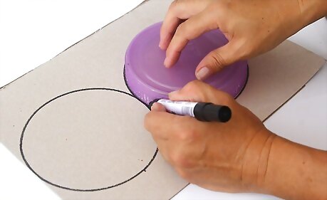 Place the container lid on top of the cardboard and trace 2 connecting circles onto the cardboard. Trace 1 circle and then trace another 1 just beside it, to create an oblong shape. Where the circles connect, it should form a straight line.