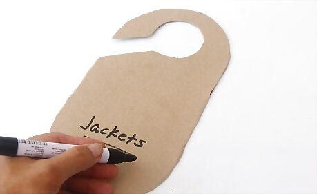 Write the names of the types of clothing onto your dividers using permanent marker. Hang them on your closet bar and divide your clothing accordingly.