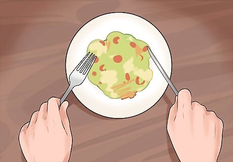 Eat small meals more often. Your portion size during meals can also have a dramatic impact on your blood sugar levels. Thus, instead of eating two or three big meals per day and risk triggering hyperglycemia, eat four or six smaller meals per day. Stick to meal portions that can fit into the space created by cupping both hands together (as if you're washing your face with water). Smaller portions don't cause as big of a insulin spike because they don't raise the blood sugar levels as high. Eating smaller portions will give you energy spread throughout the day without any of the "sugar rushes" and resulting energy "crashes." Make sure you still stay within the amount of calories you should eat each day. You can use an online calorie calculator to help determine how many calories you need to eat to maintain your weight or lose weight.