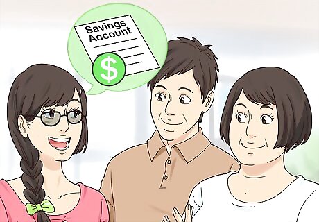 Ask your parents to open up a savings account for you. Once you have some money saved, setting up a savings account can be very helpful. It will eliminate the temptation of wanting to spend that money.
