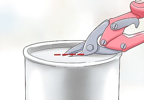 Make a tin can piggy bank. You can purchase a tin can piggy bank, or use a tin that you cannot open. You could get an empty hot chocolate powder tin and glue the top on. Next, cut a slit in the top wide a long enough to fit coins. When your money is in that tin, there is no way you can be tempted to spend it. Don't put all your money in the tin because you won't be able to get it back for a while! Once you've filled the tin, open it with a can opener! This is a great option for people who are bad at saving, can't get a bank account, or often find spare change that they left in a drawer months ago!